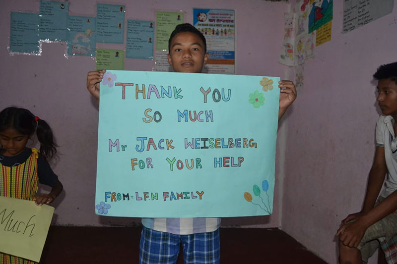 The children and their caretakers took it upon themselves to decorate homemade signs and write personal messages of thanks to Jack expressing how much happier they are in their modified home, thanks to his generosity.